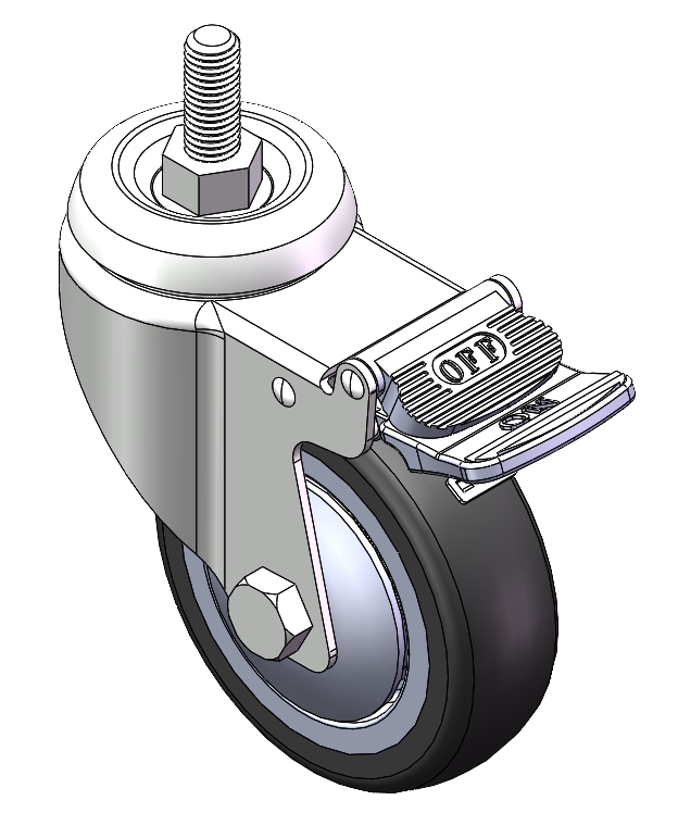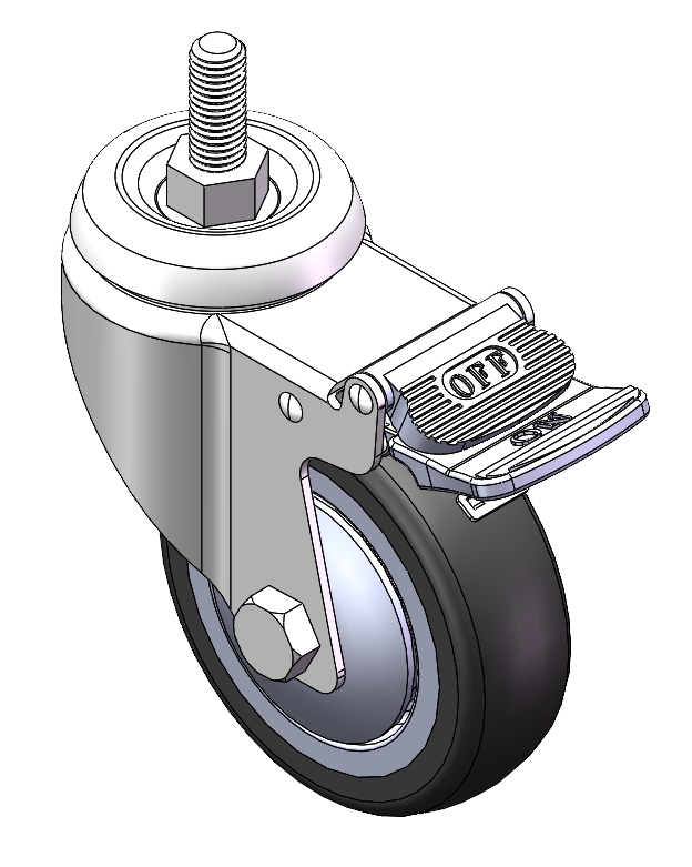 | Castors with Total Brake Locking system. Threaded Fork - M12-P1.75 Extended control lever surface, Mounting Type - Threaded Stem High-quality Impact Resistance Polypropylene Wheel Center,High-Quality Thermoplastic Rubber (TPR) Wheel Tread Pearl grey, Bearing - Ball Bearing. |