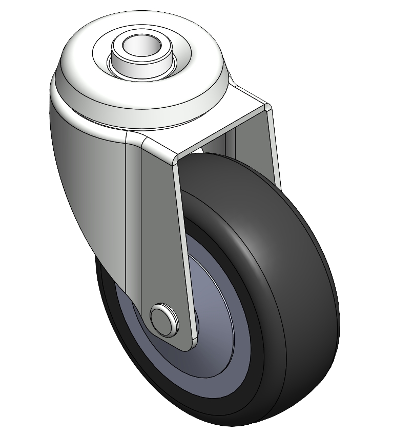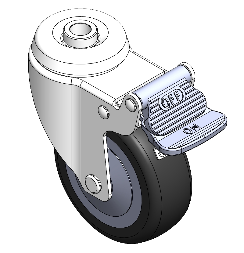 | Castors with Total Brake Locking system. Single Bolthole Fork - 10.2 holes Surface zinc-plated, Mounting Type - Single Bolthole High-quality Impact Resistance Polypropylene Wheel Center,High-Quality Thermoplastic Rubber (TPR) Wheel Tread Pearl-finish dark grey, Bearing - Ball Bearing. |