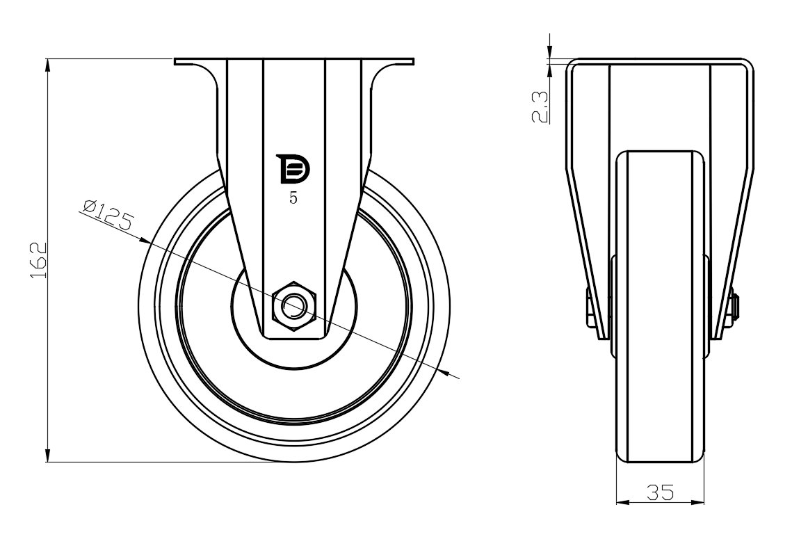 | Wheel tread: Thermoplastic (PA6) Wheel Center: Thermoplastic (PA6) Drawings are for reference only and may differ from the product |