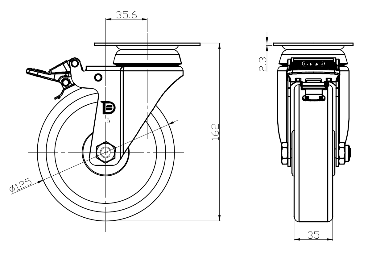 | Wheel tread: Thermoplastic (PA6) Wheel Center: Thermoplastic (PA6) Drawings are for reference only and may differ from the product |