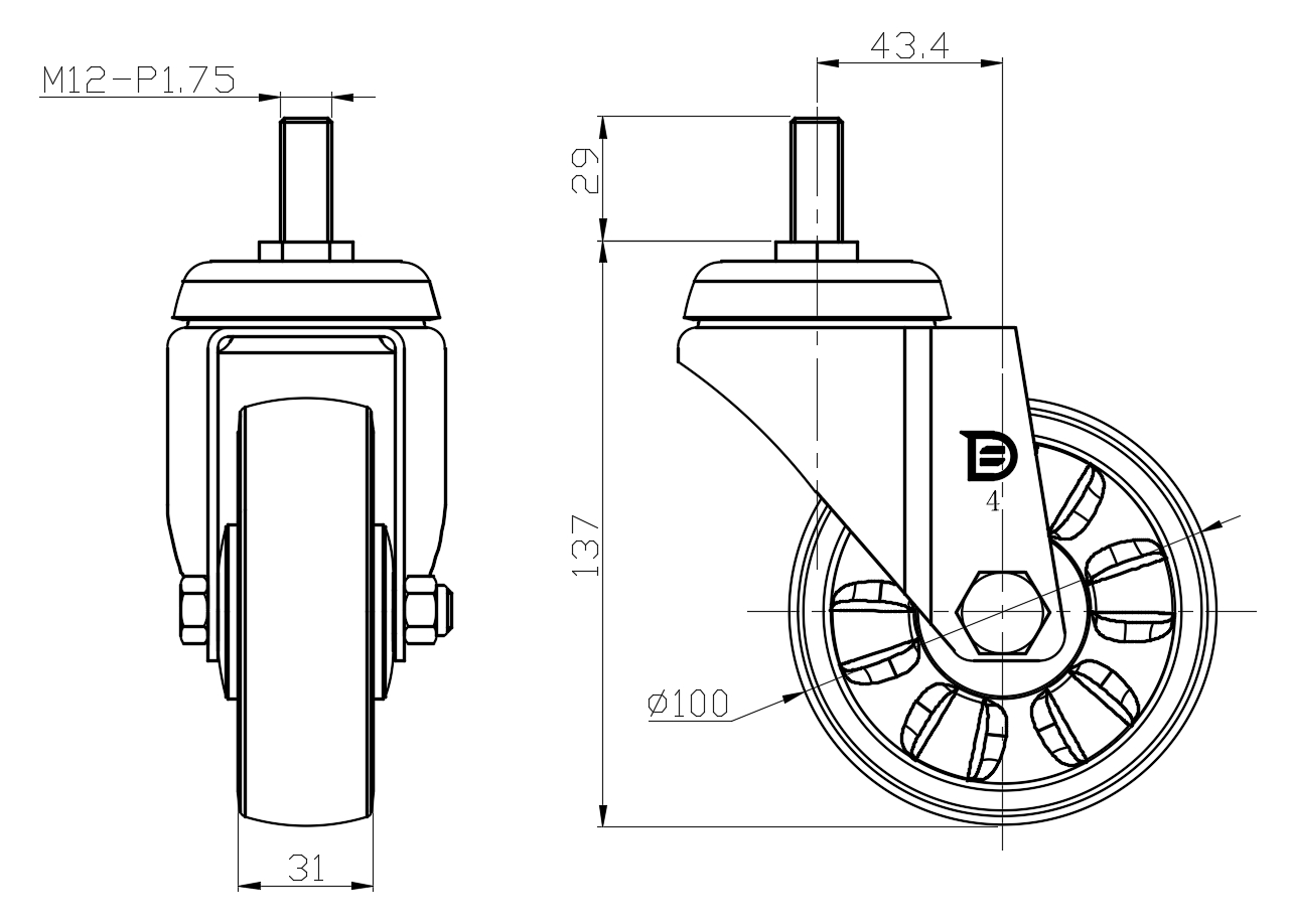 | WCPD (White) Wheel Diameter × Wheel Width 100 x 31mm |