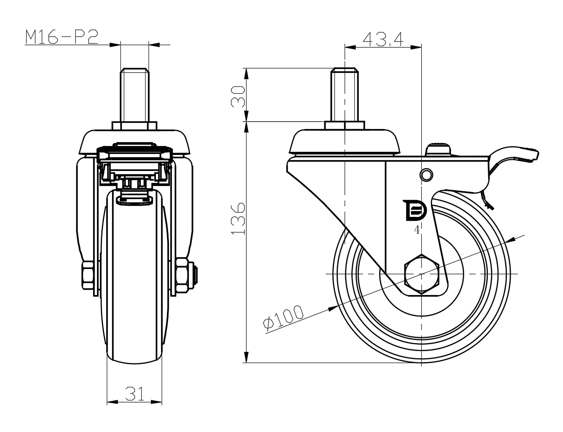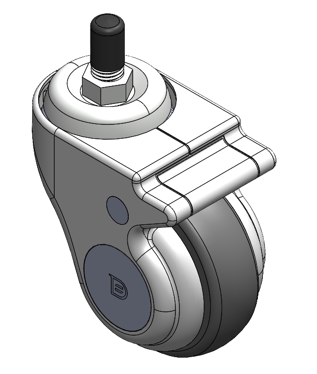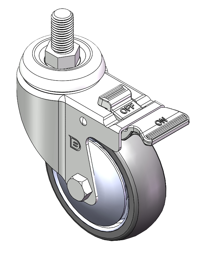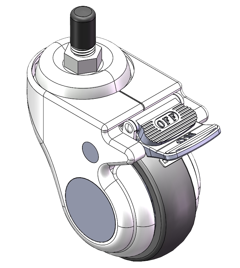 | Castors with Total Brake Locking system. Threaded Fork - M16-P2 Extended control lever surface, Mounting Type - Threaded Stem High-quality Impact Resistance Polypropylene Wheel Center,High-Quality Thermoplastic Rubber (TPR) Wheel Tread Pearl grey, Bearing - Ball Bearing. |