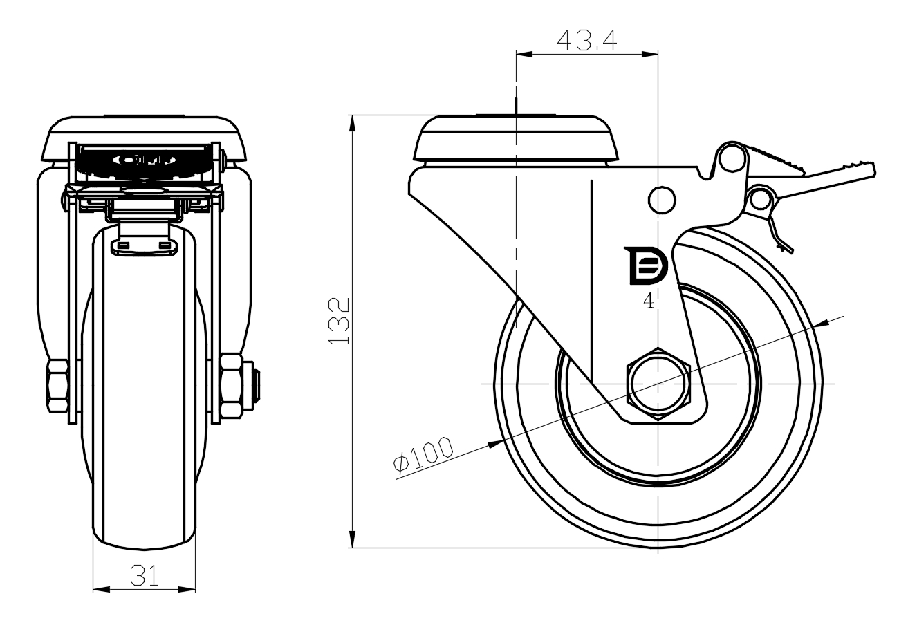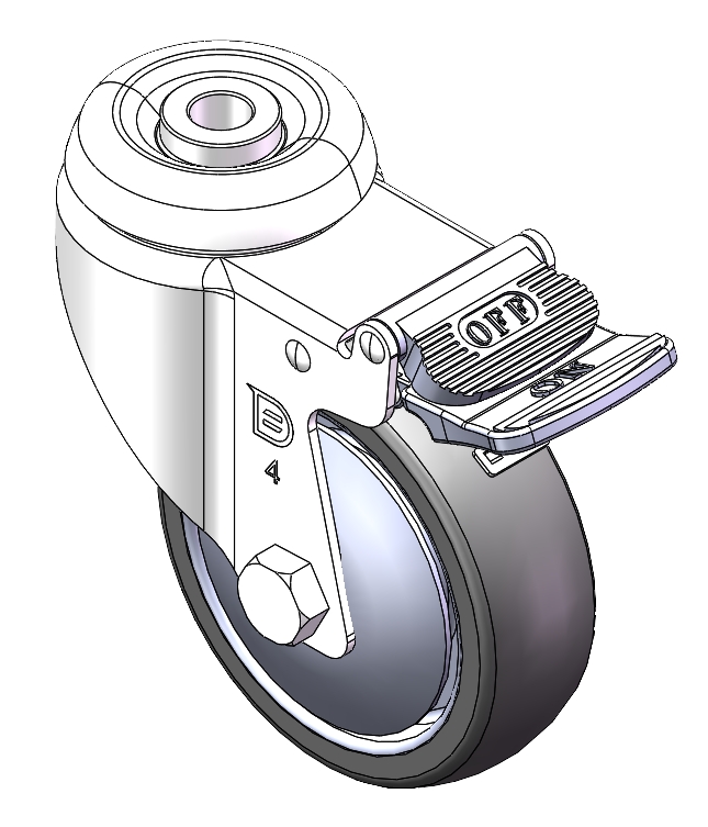 | Castors with Total Brake Locking system. Single Bolthole Fork - 12.5 holes Surface Zine-Plated, Mounting Type - Single Bolthole Impact resistant High-quality Impact Resistance Polypropylene Wheel Center,High-Quality Thermoplastic Rubber (TPR) Wheel Tread Pearl grey, Bearing - Ball Bearing. |