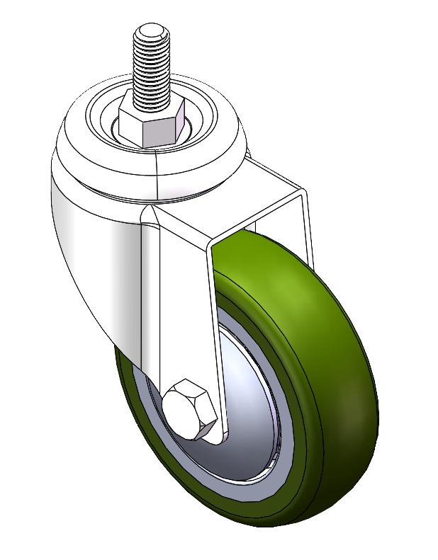 | Swivel Caster with thread-Riveted Stamping Fork—M12-P1.75 Zine-Plated, Mounting Type - Threaded Stem High-Quality Impact-Resistant Polypropylene core, High Quality Polyurethane Wheel Tread Gray color, Bearing—Ball Bearing. |   | |||||