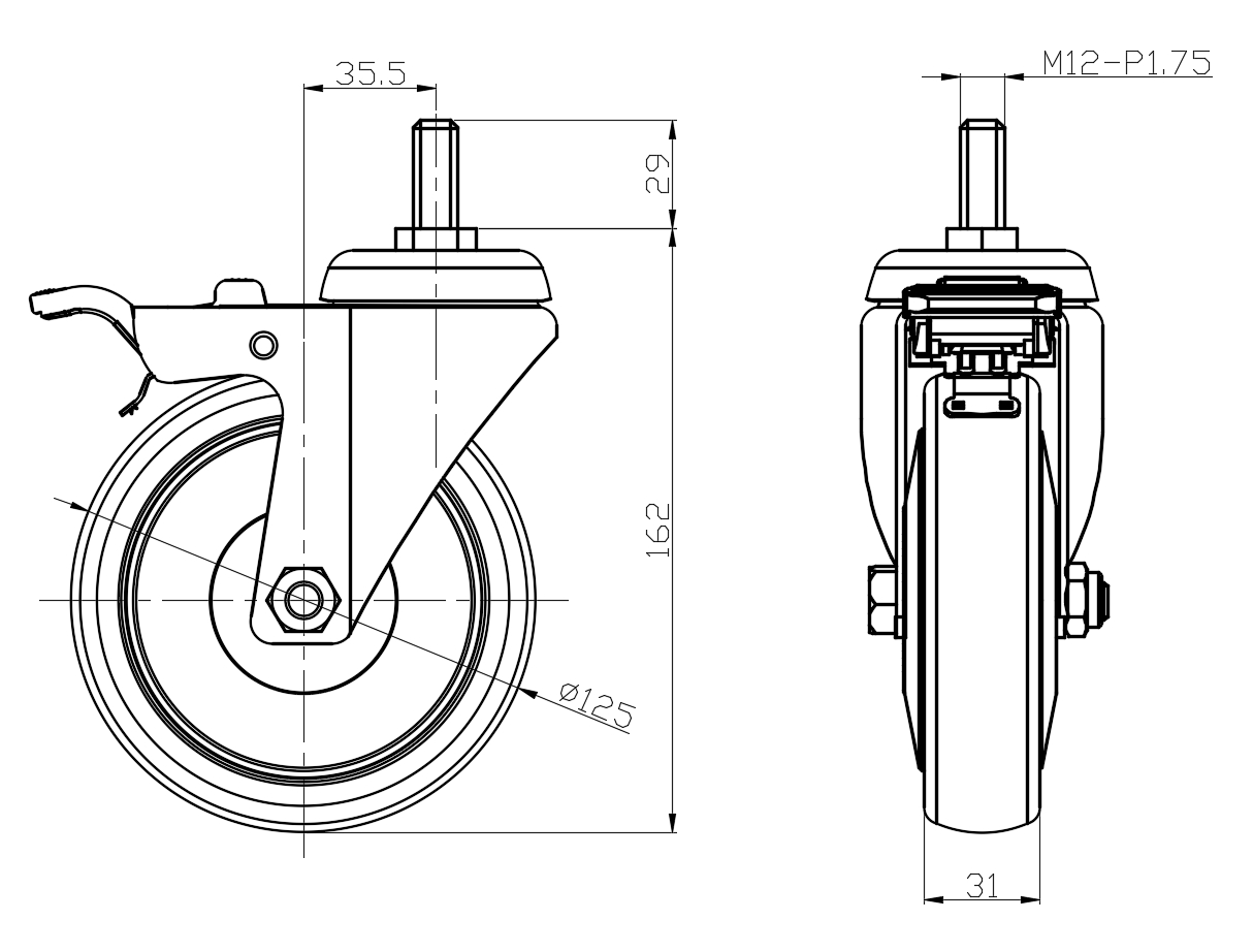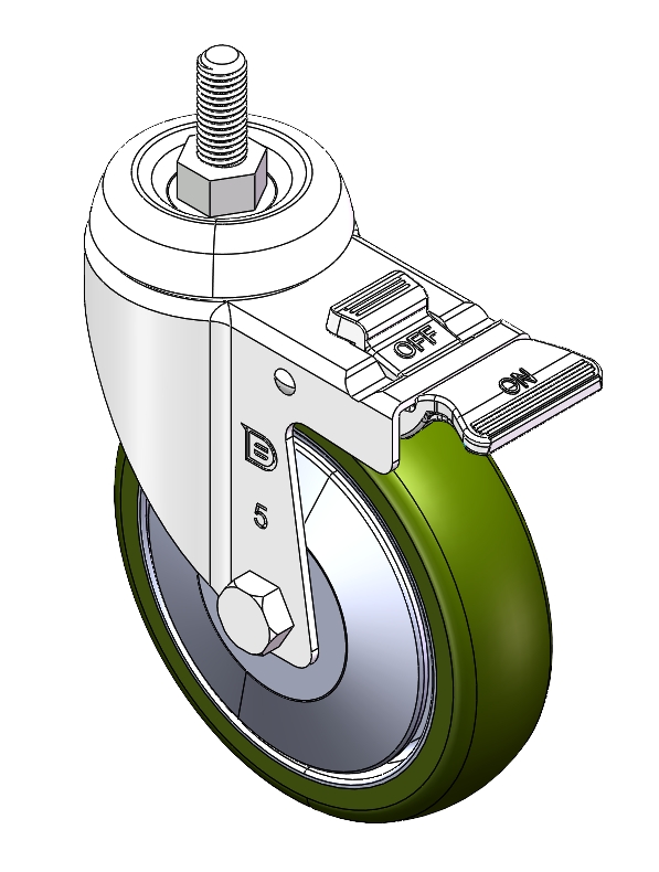 | Casters with Total Brakes and a With locking system. Threaded Stem Riveted Pressed Fork—M12-