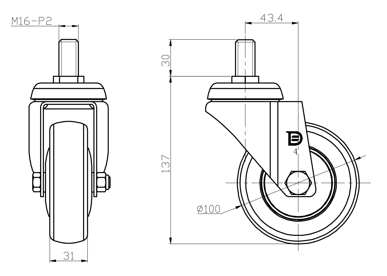 | Swivel Caster with thread-Riveted Stamping Fork—M16-P2 Zine-Plated, Mounting Type - Threaded Stem High-Quality Impact-Resistant Polypropylene core, High-Quality Reinforced Polypropylene Rubber (TPR) Wheel Tread Pearl-finish dark gray, Bearing—Ball Bearings. |   | |||||