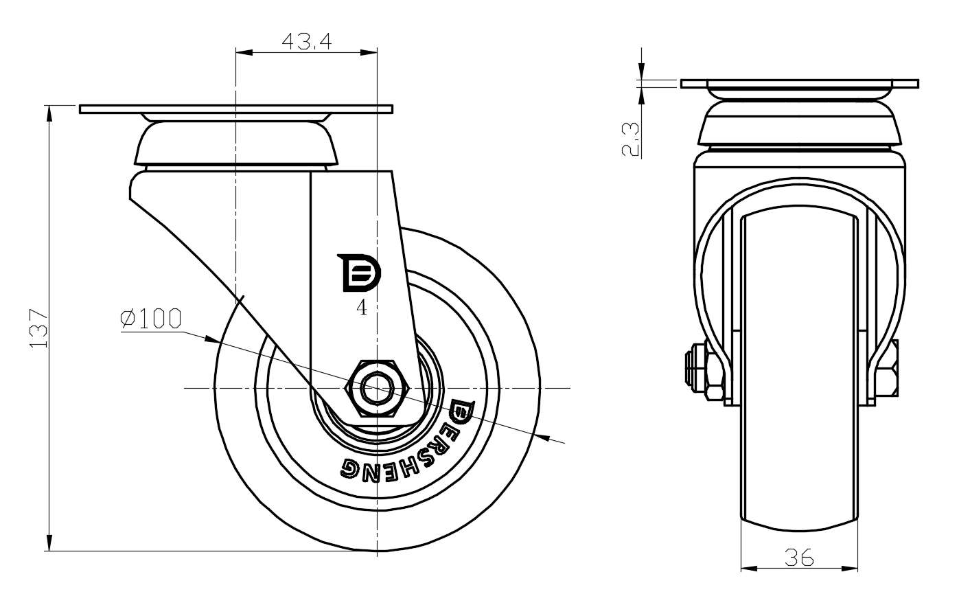 | Wheel tread: Made of high-quality polyurethane Wheel Center: aluminum core Drawings are for reference only and may differ from the product |   | |||||