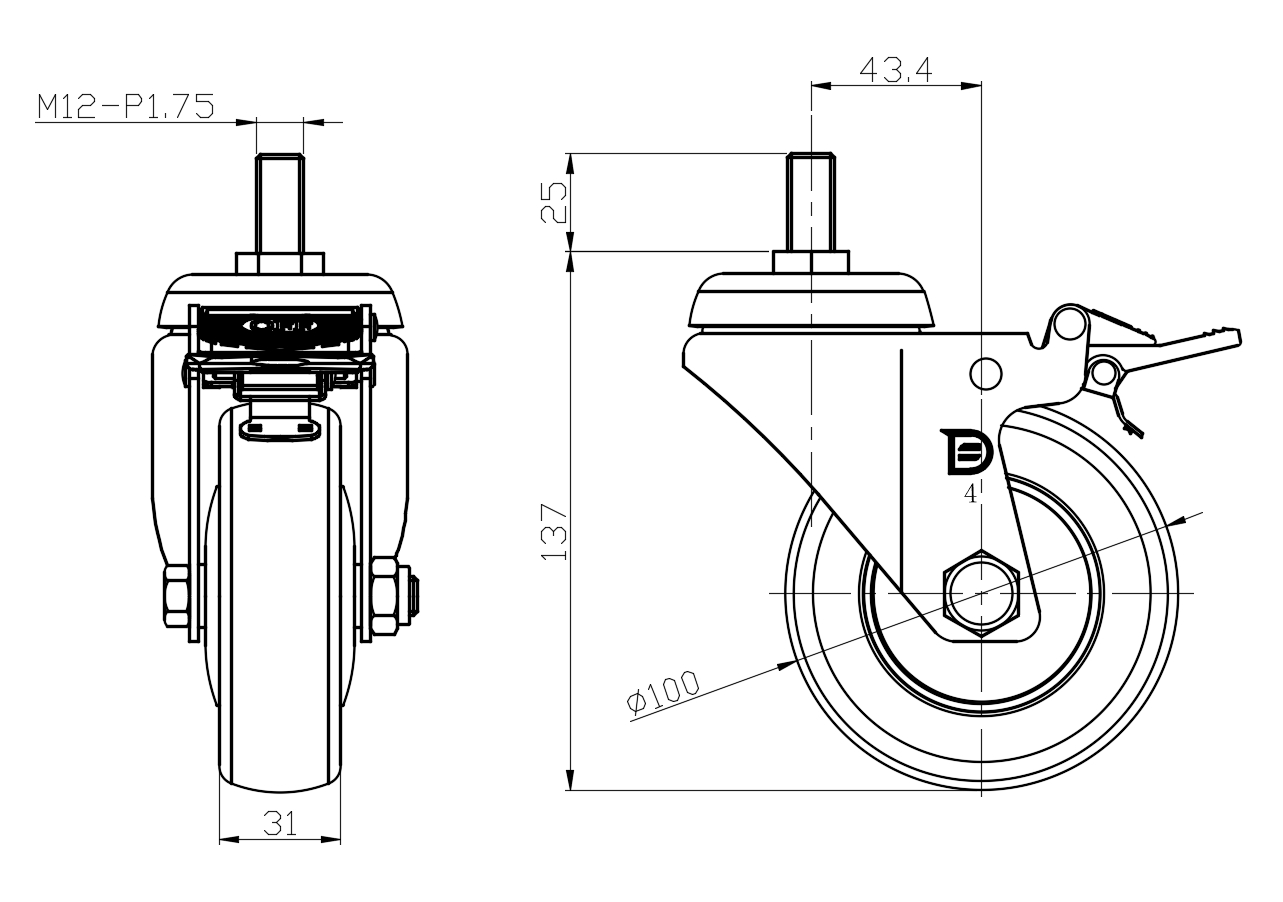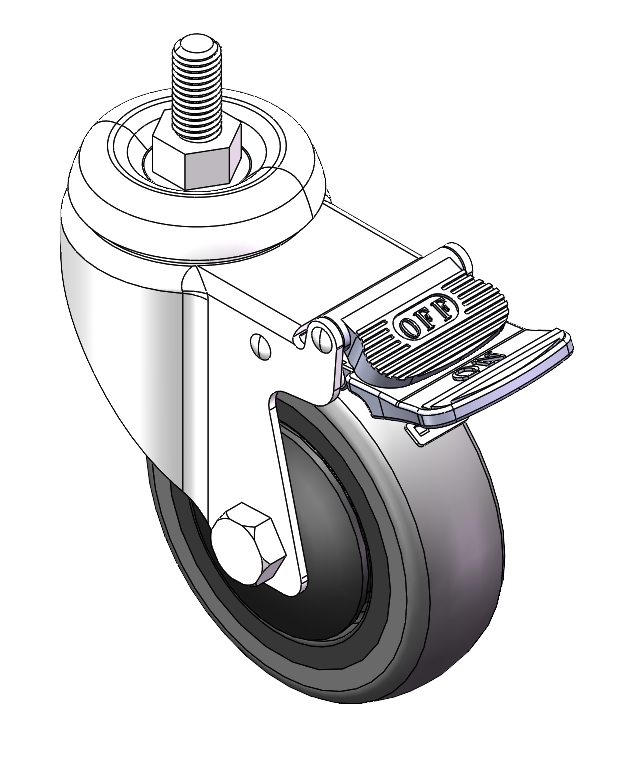 | Casters with a Total Brake and With locking system. Threaded Stem Riveted Pressed Fork—M12-