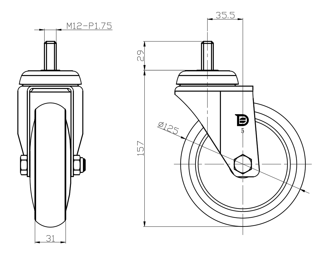 | Wheel tread: Made of high-quality polyurethane Wheel Center: aluminum core Drawings are for reference only and may differ from the product |   | |||||