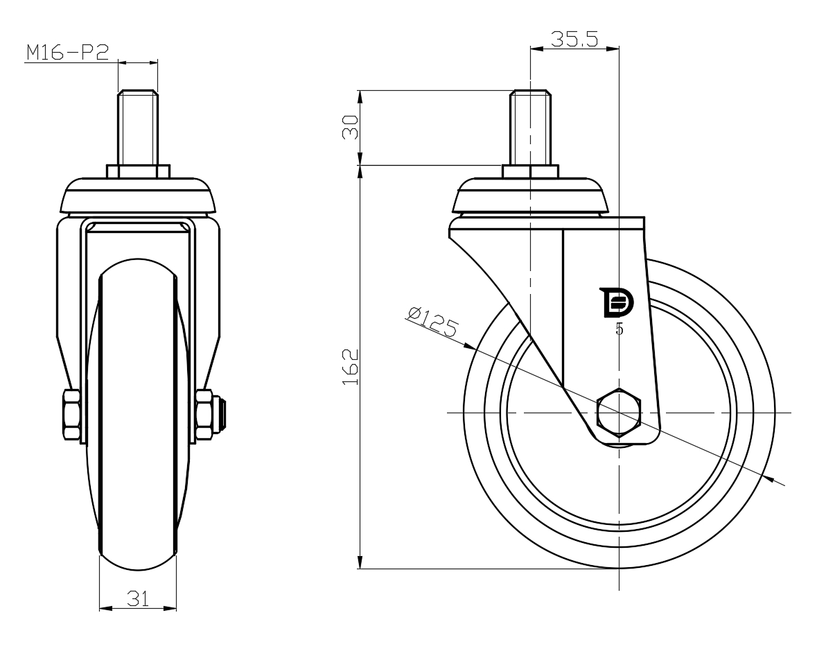 | Wheel tread: Made of high-quality polyurethane Wheel Center: aluminum core Drawings are for reference only and may differ from the product |   | |||||