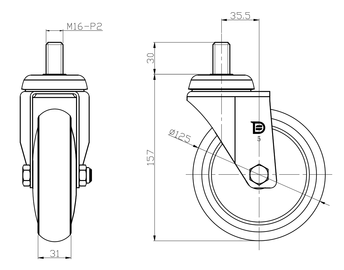 | Wheel tread: Made of high-quality polyurethane Wheel Center: aluminum core Drawings are for reference only and may differ from the product |   | |||||