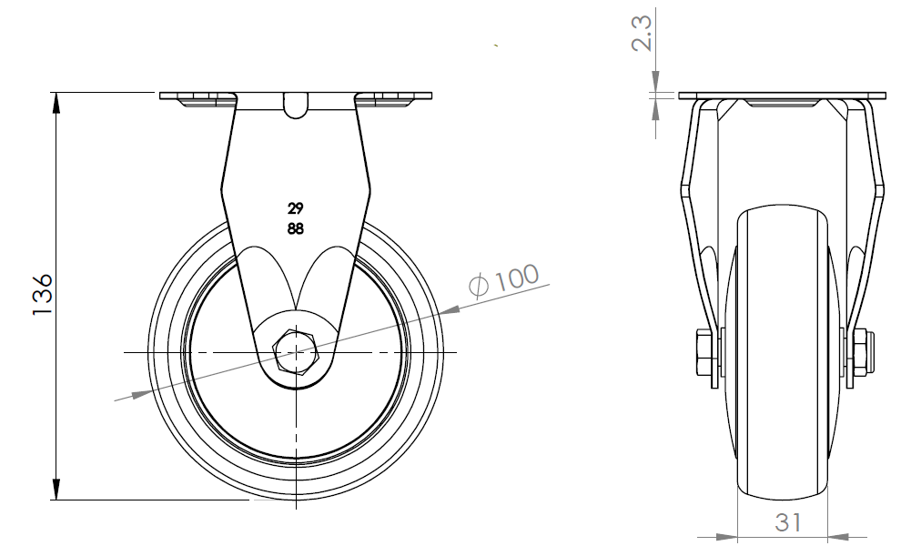 | PPR輪 輪徑 × 輪寬 100 x 31mm |