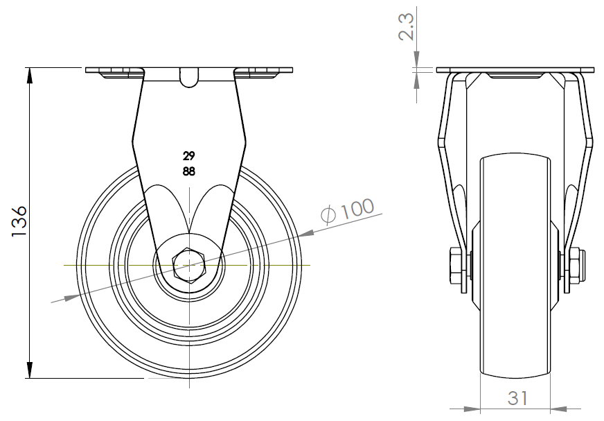 | 橡膠輪 輪徑 × 輪寬 100 x 31mm |