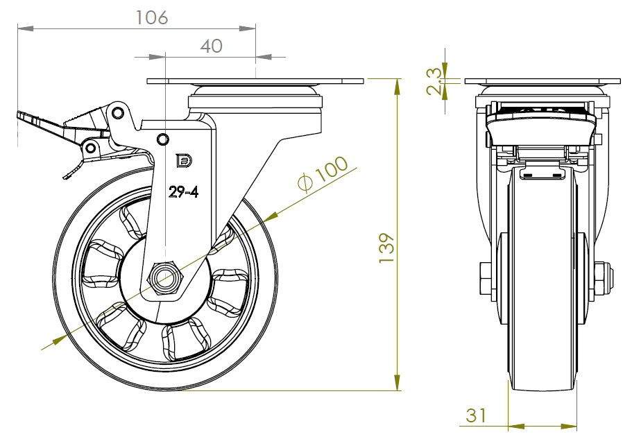 | W全效輪 輪徑 × 輪寬 100 x 31mm |