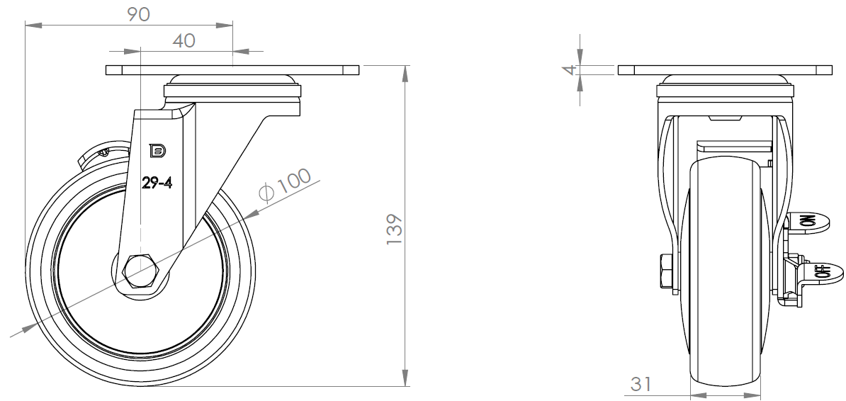 | PPR輪 輪徑 × 輪寬 100 x 31mm |