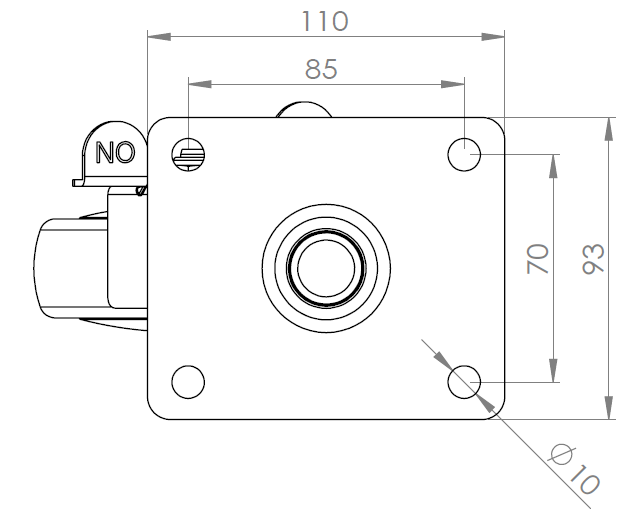 | 配有側(輪)煞式,鎖定係統的腳輪。底板鉚合沖壓腳架—圓孔 表面電鍍,底板式(4T)安裝裝置 耐衝擊聚丙烯輪芯,熱塑性彈性體(TPR)輪面 深灰色,輪子—中管式。 |