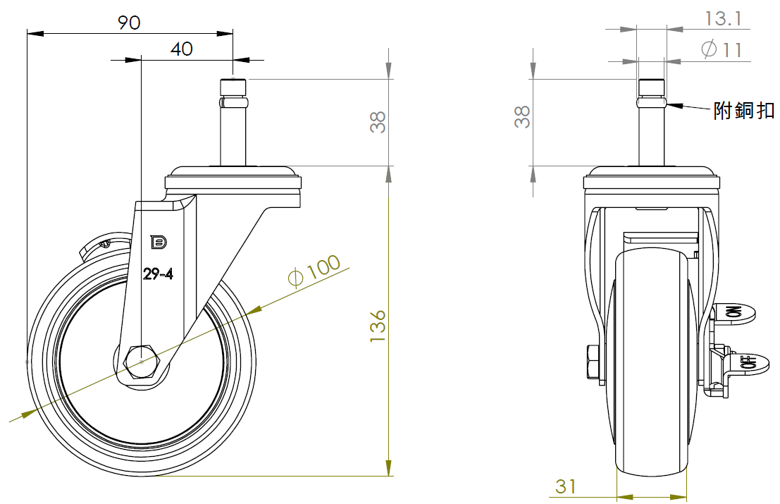 | 全效輪 輪徑 × 輪寬 100 x 31mm |