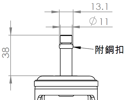 | 配有側(輪)煞式,鎖定係統的腳輪。插心鉚合沖壓腳架 Ø11x38L 表面鍍鋅,插心式安裝裝置,附銅扣 耐衝擊聚丙烯輪芯,熱塑性彈性體(TPR)輪面 深灰色,輪子軸承—精密滾珠。 |