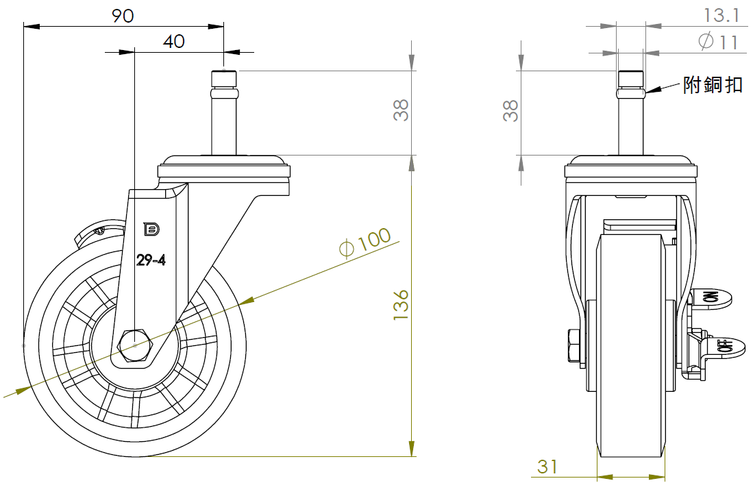 | W全效輪 輪徑 × 輪寬 100 x 31mm |