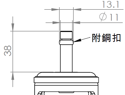 | 配有側(輪)煞式,鎖定係統的腳輪。插心鉚合沖壓腳架— Ø11x38L 表面鍍鋅,插心式安裝裝置,附銅扣 加強式耐衝擊聚丙烯輪芯,熱塑性彈性體(TPR)輪面 深灰色,輪子軸承—精密滾珠。 |