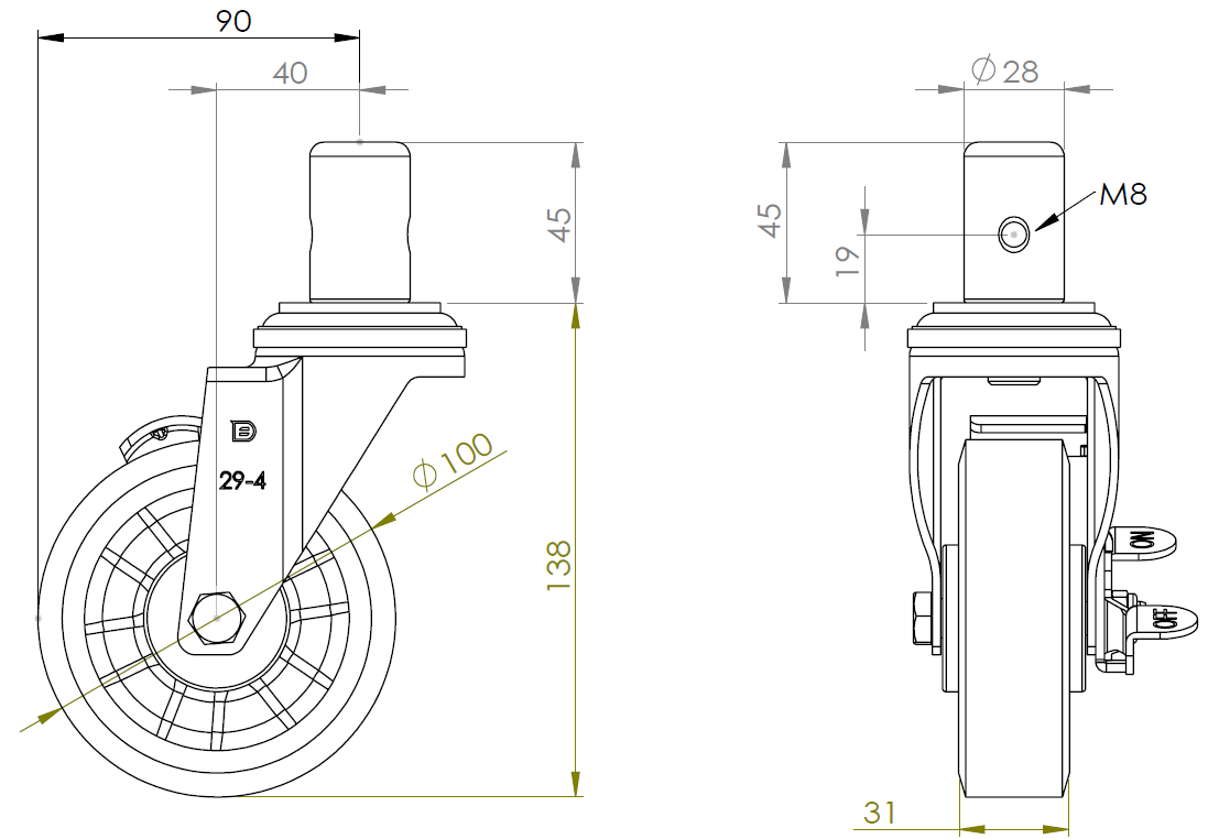 | W全效輪 輪徑 × 輪寬 100 x 31mm |