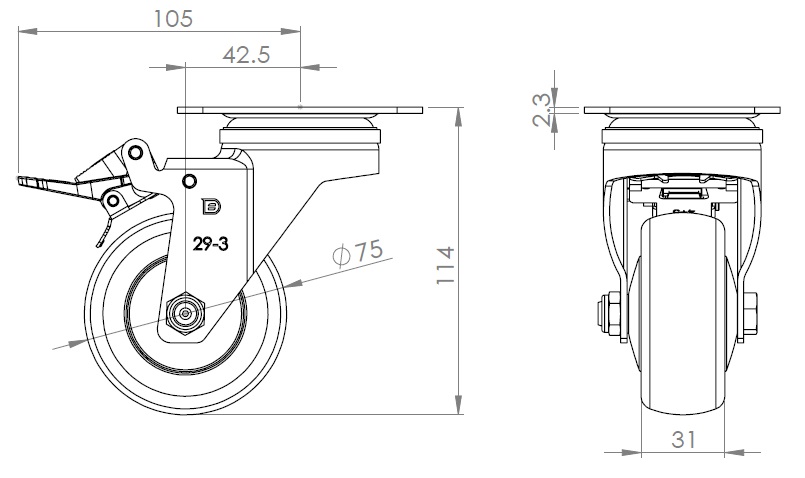 | Đường kính bánh xe đầy đủ × chiều rộng bánh xe 75 x 31mm |