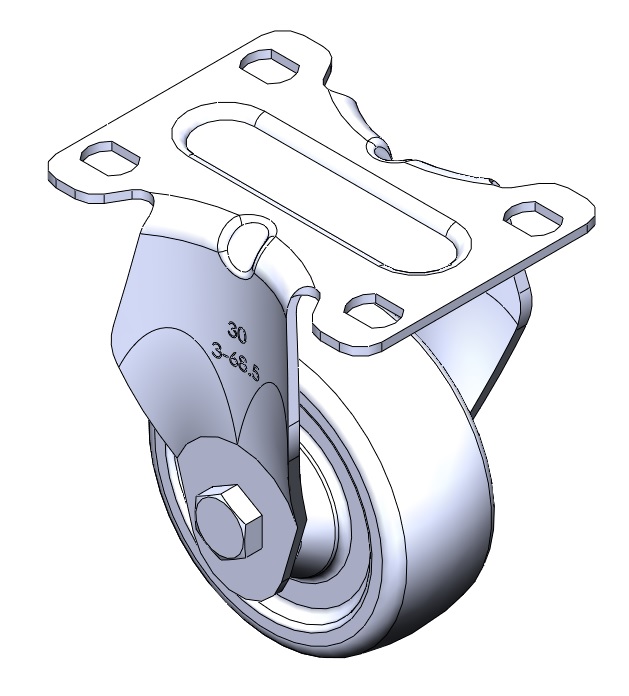 | Rigid Caster with Stamping Fabricated Caster Fork and 75 x 45 mm (3" x 1-3/4") Bolt Hole Spacing. Zine-Plated, Mounting Type - Top Plate. Cast Iron core with High-Quality Resilient Rubber Wheel Tread. Bearing - Plain Bearing. |   | |||||