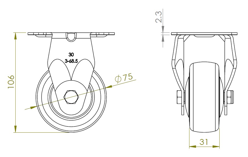 | PPR Wheel Diameter × Wheel Width 75 x 31mm |