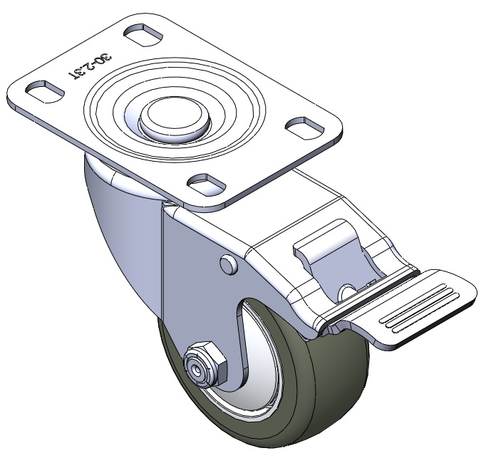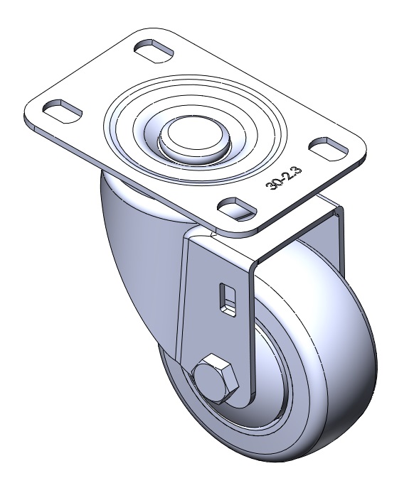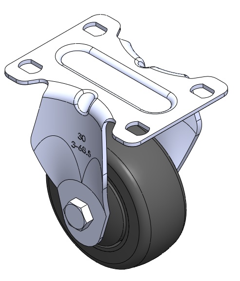 | Rigid Caster with Stamping Fabricated Caster Fork and 75 x 45 mm (3" x 1-3/4") Bolt Hole Spacing. Zine-Plated, Mounting Type - Top Plate. High-Quality Impact-Resistant Polypropylene core with High-Quality Reinforced Polypropylene Rubber (TPR) Wheel Tread. Dark gray. Bearings: Ball Bearings. |