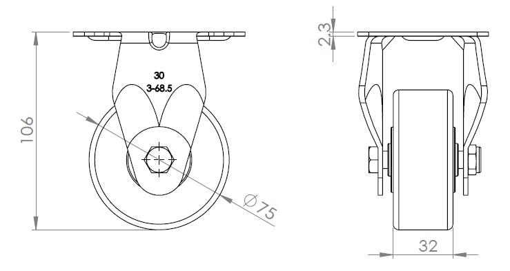 | PU Wheel Diameter × Wheel Width 75 x 32mm |