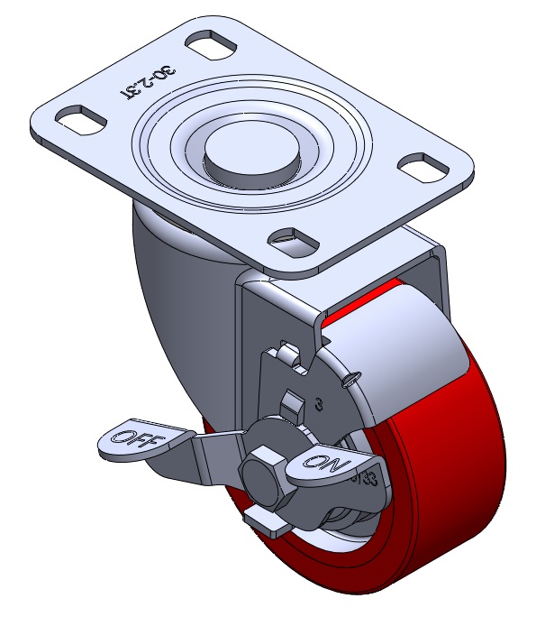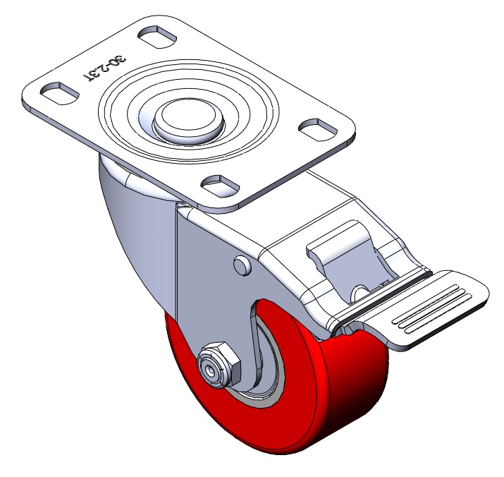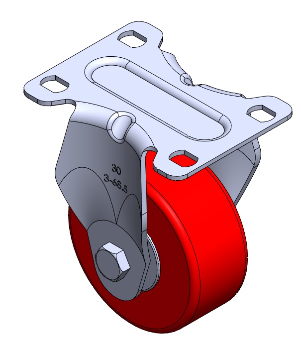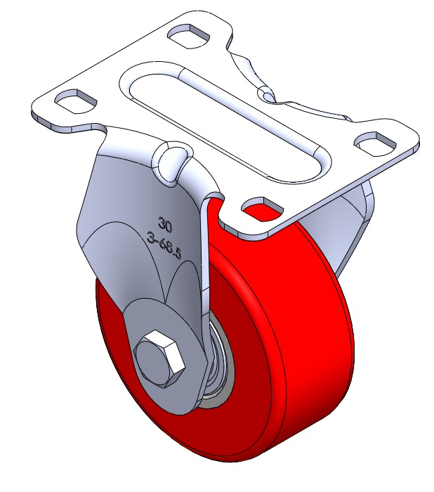 | Rigid Caster with Stamping Fabricated Caster Fork and 75 x 45 mm (3" x 1-3/4") Bolt Hole Spacing. Zine-Plated, Mounting Type - Top Plate. Cast Iron core with High Quality Polyurethane Wheel Tread. Red Cast Iron finish. Bearings: Ball Bearings. |