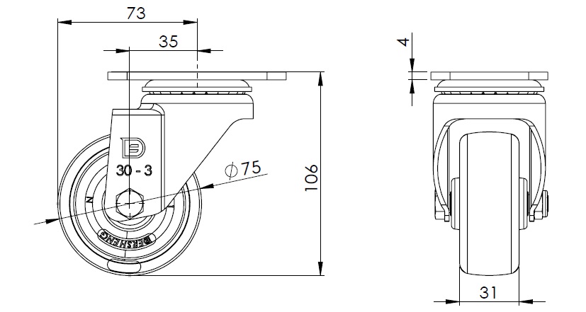 | PP Wheel Diameter × Wheel Width 75 x 31mm |