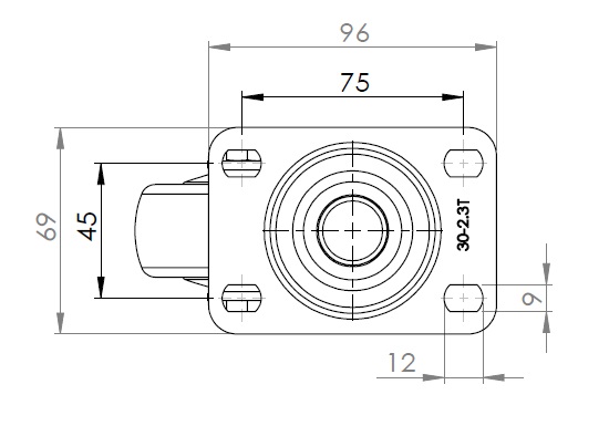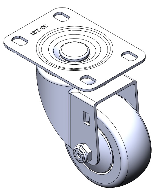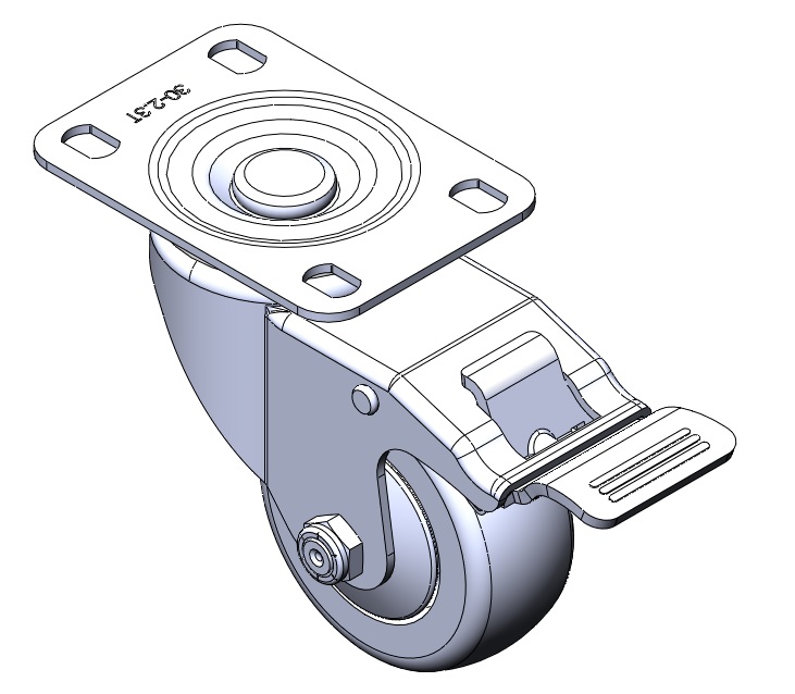 | Swivel Caster with Riveted Fork and Stamping Fork – 75 x 45 mm (3" x 1-3/4") Bolt Hole Spacing Zine-Plated, Mounting Type - Top Plate High-Quality Impact-Resistant Polypropylene core, High-Quality Reinforced Polypropylene Rubber (TPR) Wheel Tread Dark gray, Bearing – Ball Bearings |