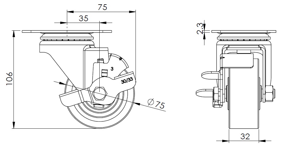 | PU Wheel Diameter × Wheel Width 75 x 32mm |