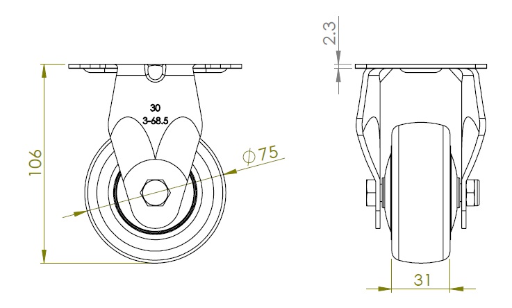 | PPR E-conductive Wheel Diameter × Wheel Width 75 x 31mm |