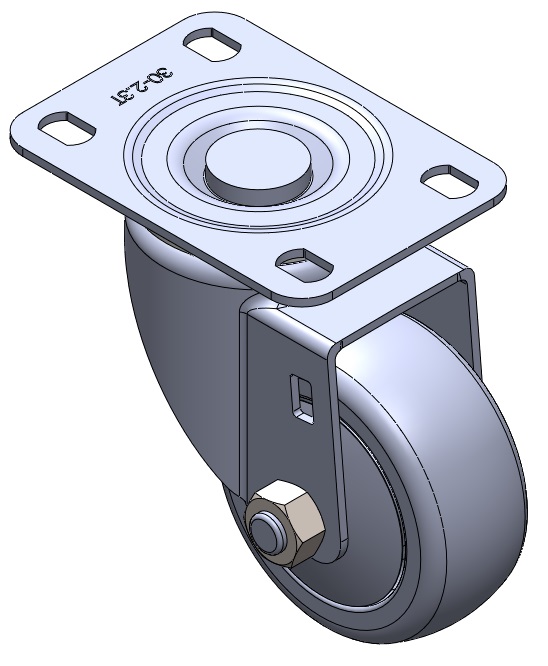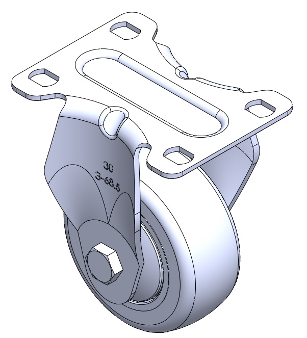 | Rigid Caster with Stamping Fabricated Caster Fork and 75 x 45 mm (3" x 1-3/4") Bolt Hole Spacing. Zine-Plated, Mounting Type - Top Plate. High-Quality Impact-Resistant Polypropylene core with High-Quality Reinforced Polypropylene Rubber (TPR) Wheel Tread. Dark gray. Bearings: Ball Bearings. |