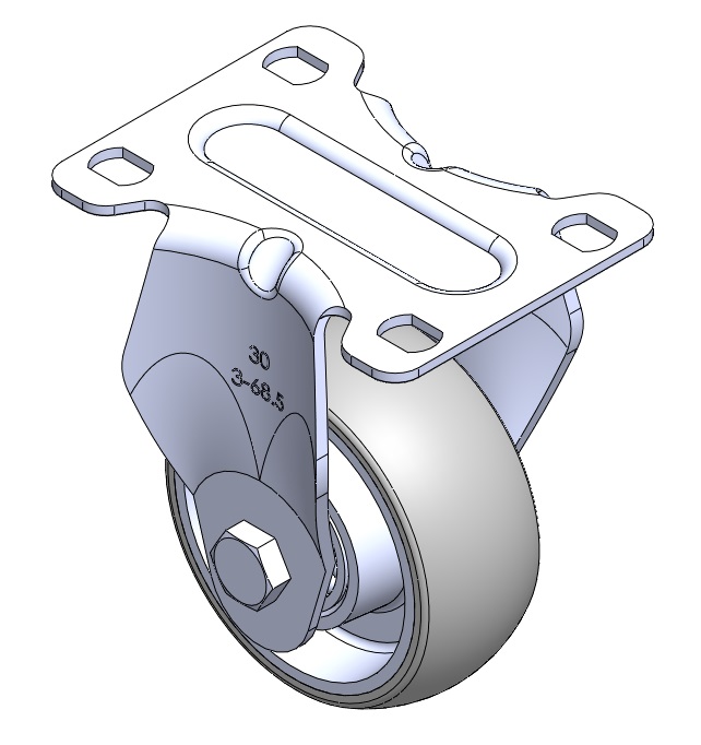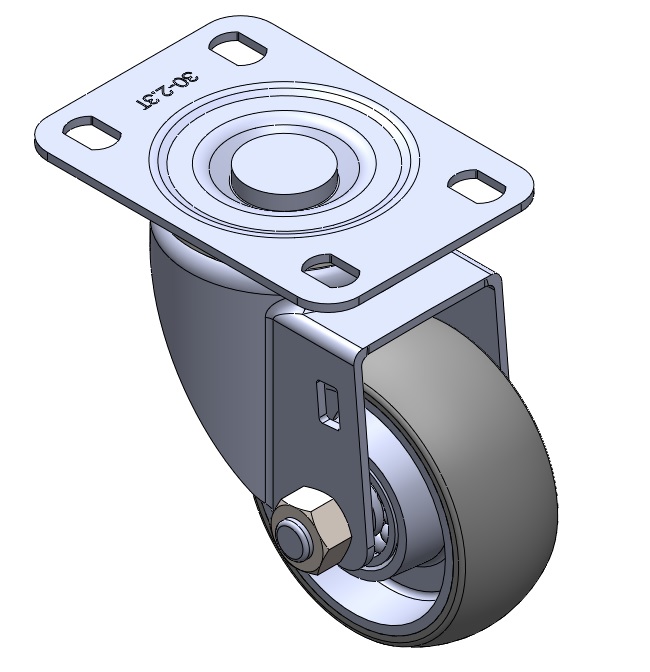 | Rigid Caster with Stamping Fabricated Caster Fork and 75 x 45 mm (3" x 1-3/4") Bolt Hole Spacing. Zine-Plated, Mounting Type - Top Plate. Aluminum core with High Quality Polyurethane Wheel Tread. Gray color. Bearings: Ball Bearings. |