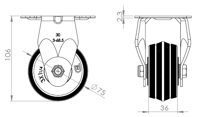 Metric Imperial Wheel Diameter 75mm Wheel Width 36mm |