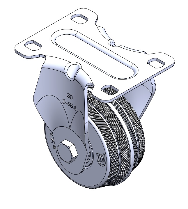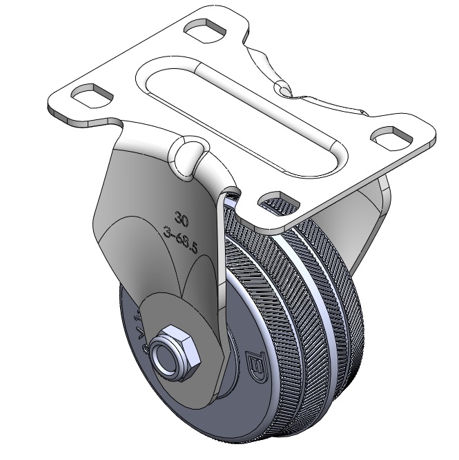 | Rigid Caster with Stamping Fabricated Caster Fork and 75 x 45 mm (3" x 1-3/4") Bolt Hole Spacing. Zine-Plated, Mounting Type - Top Plate. Cast Iron core with High-Quality Resilient Rubber Wheel Tread. Bearings: Ball Bearings. |