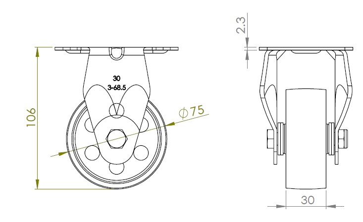 | Cast Iron Wheel Diameter × Wheel Width 75 x 30mm |