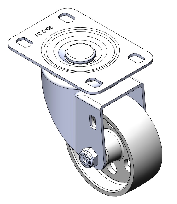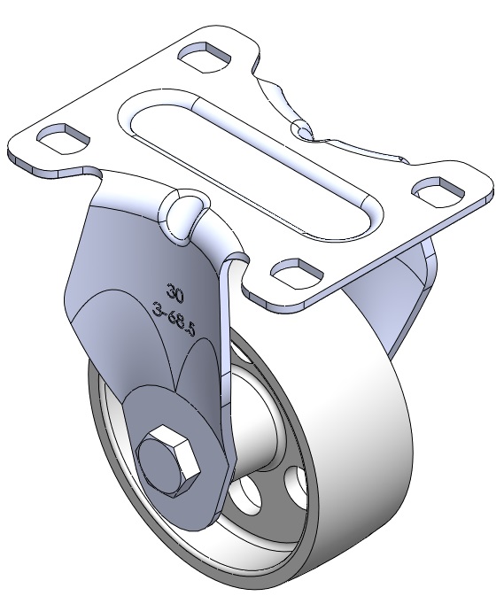 | Rigid Caster with Stamping Fabricated Caster Fork and 75 x 45 mm (3" x 1-3/4") Bolt Hole Spacing. Zine-Plated, Mounting Type - Top Plate. Cast Iron core and Wheel Tread. Black, Plain Bearing. |