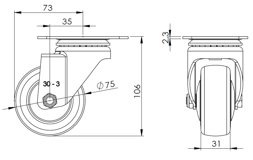 | PPR Wheel Diameter × Wheel Width 75 x 31mm |