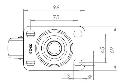| Swivel Caster with Riveted Fork and Stamping Fork – 75 x 45 mm (3" x 1-3/4") Bolt Hole Spacing Zine-Plated, Mounting Type - Top Plate High-Quality Impact-Resistant Polypropylene core, High-Quality Reinforced Polypropylene Rubber (TPR) Wheel Tread Dark gray, Bearing – Ball Bearings |
