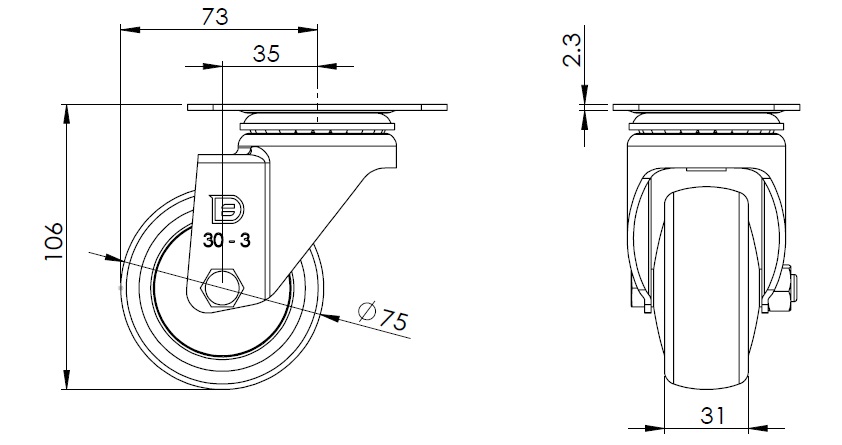 | PPR E-conductive Wheel Diameter × Wheel Width 75 x 31mm |