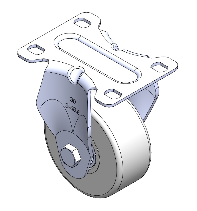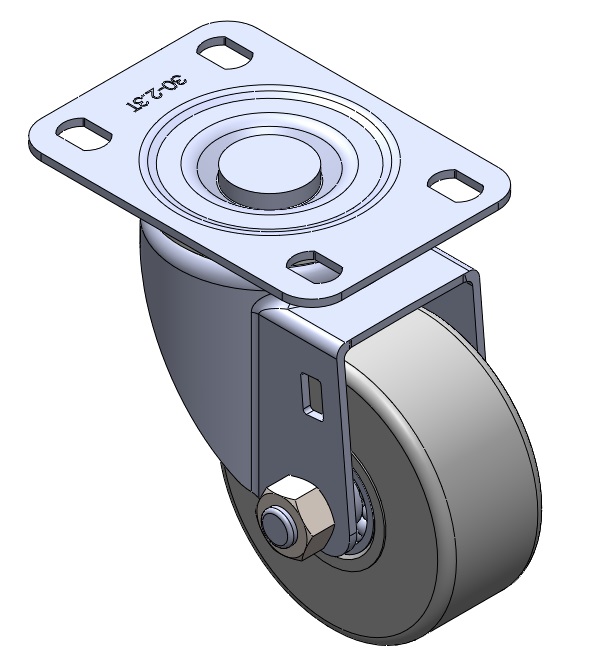 | Rigid Caster with Stamping Fabricated Caster Fork and 75 x 45 mm (3" x 1-3/4") Bolt Hole Spacing. Zine-Plated, Mounting Type - Top Plate. Cast Iron core with High Quality Polyurethane Wheel Tread. Gray color. Bearings: Ball Bearings. |