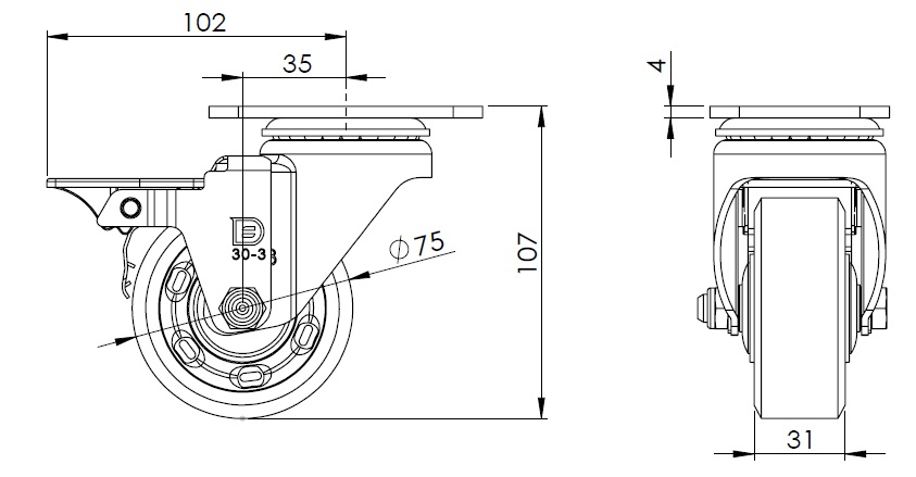 | W Resolute Wheel Diameter × Wheel Width 75 x 31mm |