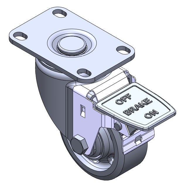 | Casters with a POSSIBLE With locking system. Top Plate Riveted and Stamping with 75 x 45 mm (3" x 1-3/4") Bolt Hole Spacing. Zine-Plated, Top Plate (4T) Mounting Type system. Reinforced, impact-resistant polypropylene Wheel Center with High-Quality Reinforced Polypropylene Rubber (TPR) Wheel Tread. Dark gray, Bearing with Ball Bearings. |