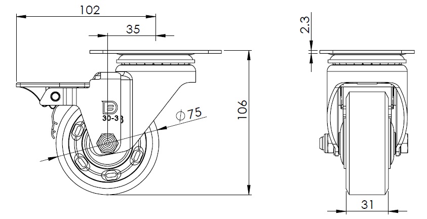 | W Resolute Wheel Diameter × Wheel Width 75 x 31mm |