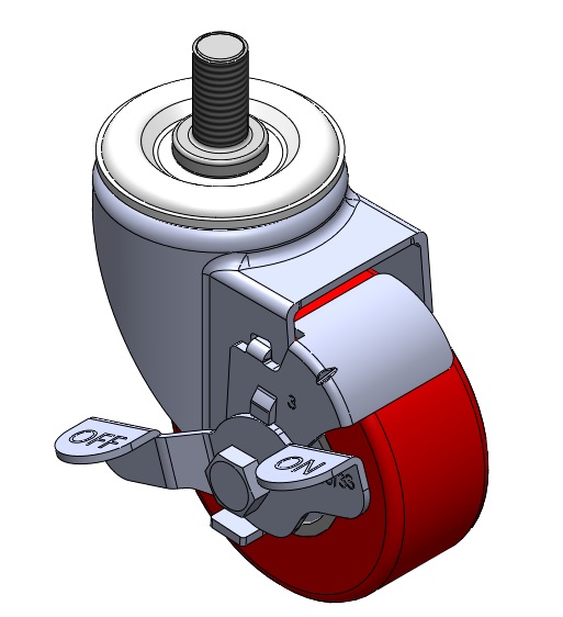 Casters with Side Brakes and With locking system. Threaded Stem Riveted Pressed Fork – 1/2-12 threads.