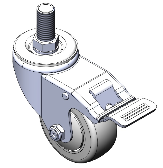 Casters with Total Brakes and With locking system. Threaded Stem Riveted Pressed Fork—5/8-11.